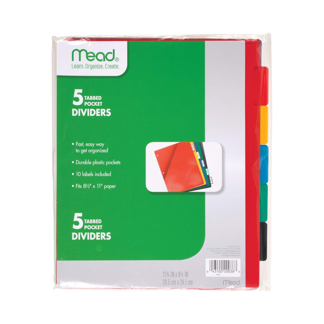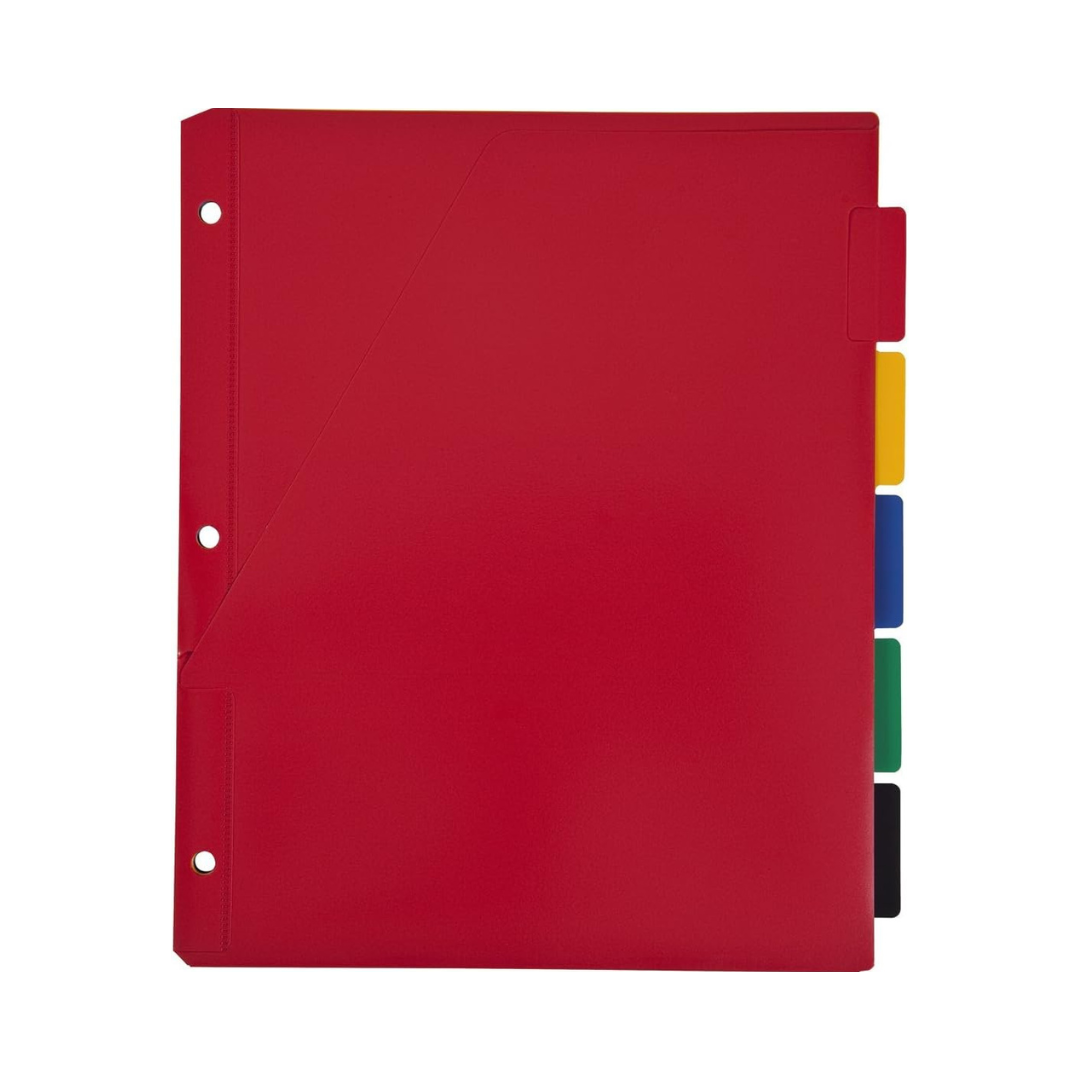 - Los 5 separadores de pestañas cuentan con un bolsillo para almacenar sábanas sueltas, pruebas y mucho más. Se incluyen 10 pestañas adhesivas para que puedas etiquetar los separadores a tu manera